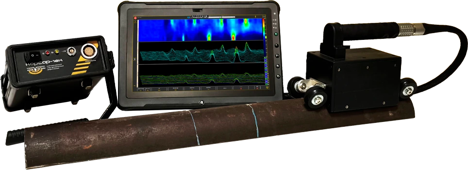 Электромагнитный многоканальный дефектоскоп КОРСАР-16К предназначен для контроля стенок металлических объектов при одностороннем доступе. Комплекс обеспечивает выявление и количественную оценку потерь металла в виде - утонений стенок, точечных язв различного происхождения таких как коррозионное утонение стенки, эрозия, питтинговая коррозия. Позволяет обнаружить дефекты, вызванные процессами наводораживания и науглероживания, трещины и расслоения. Комплекс применяется для обследования поверхностей нагрева котлов, технологических печей, днищ и стенок резервуаров, труб (в т.ч. буровых), сосудов. В комплекте с охватывающим преобразователем дефектоскоп является полноценной портативной установкой контроля бурильных труб.